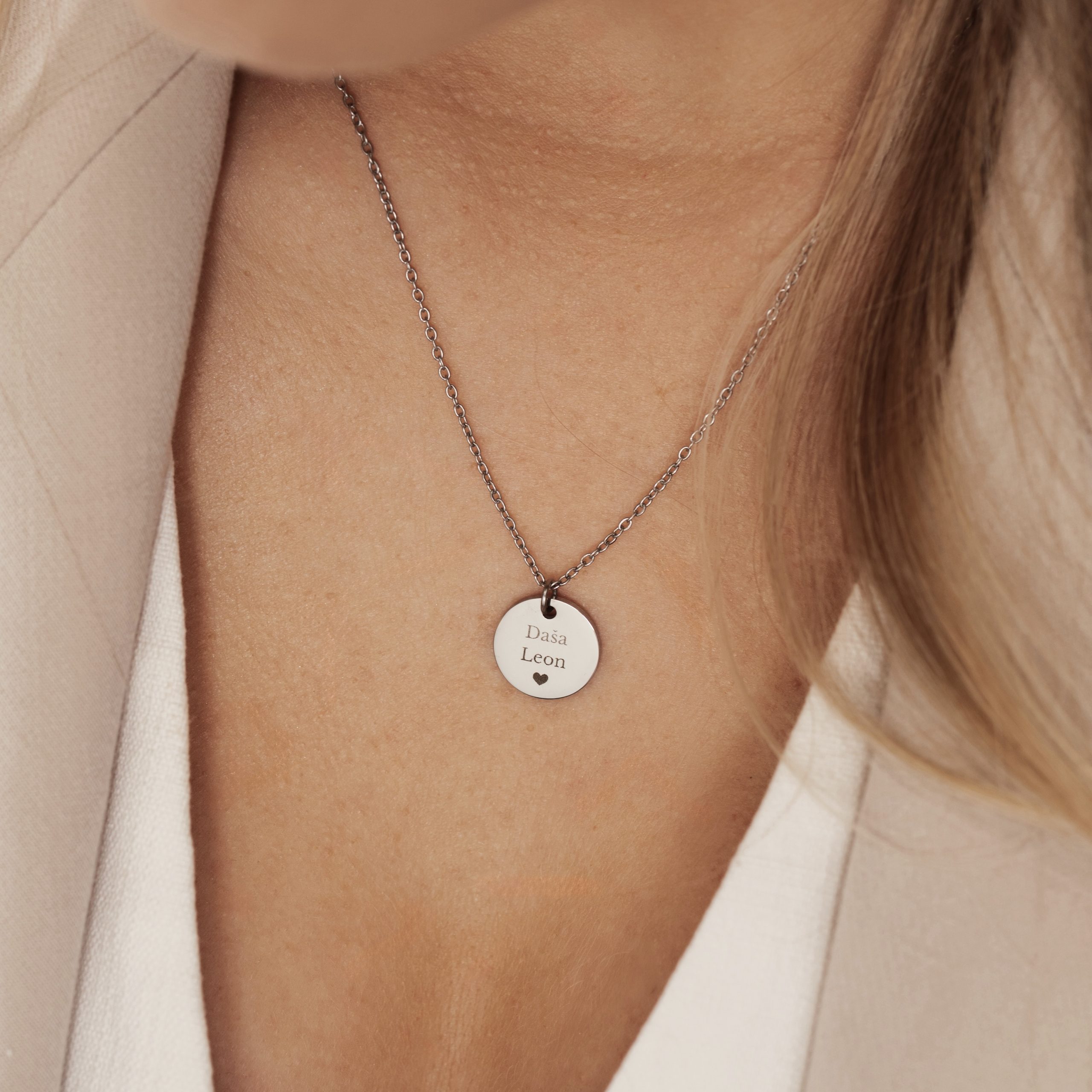 Na obesek lahko vgraviramo ime, datum rojstva, težo, uro, višino ali poseben motiv – vsak detajl, ki nosi za vas dragocen spomin.